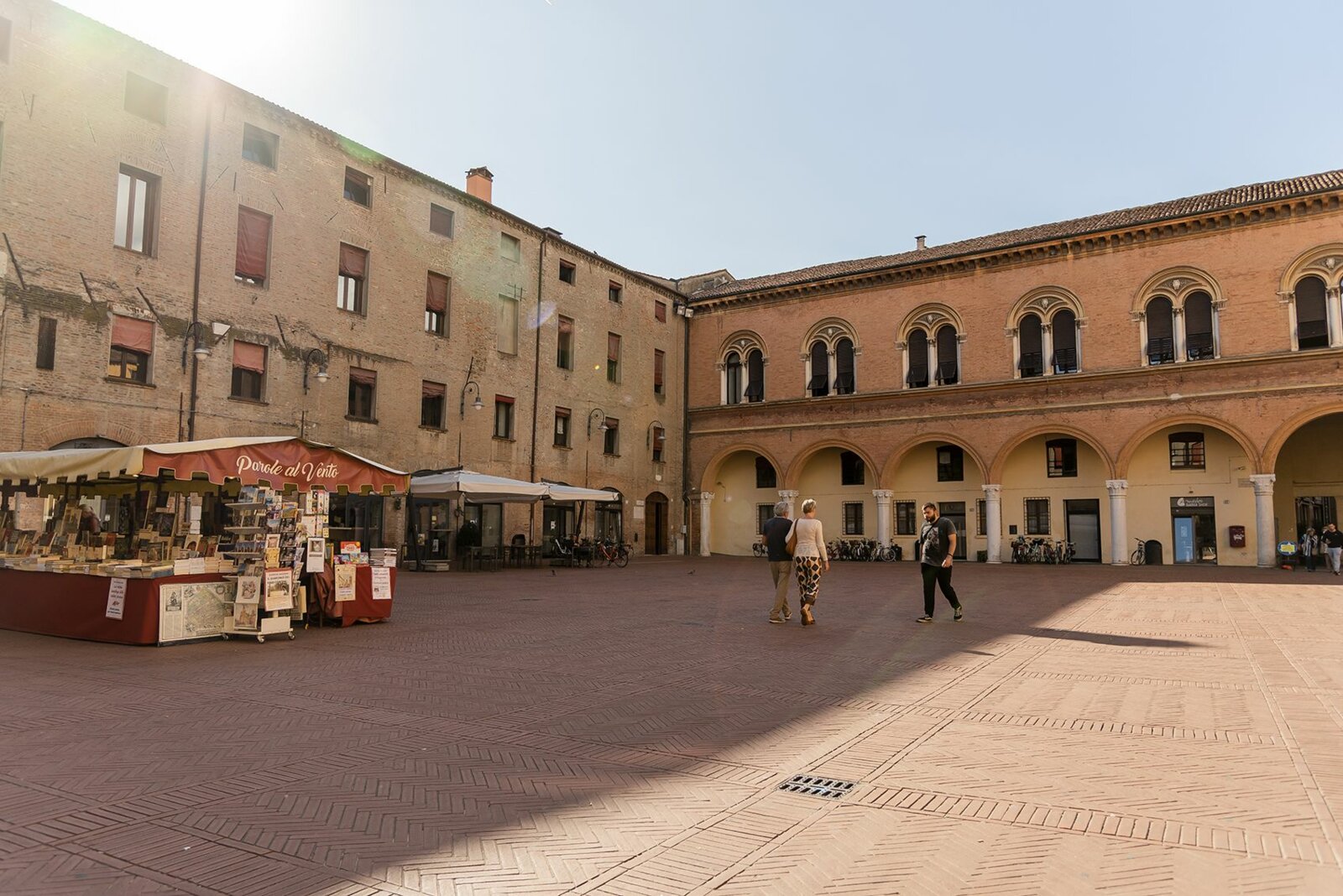 Nascosta tra le mura dei palazzi che la circondano, Piazza Municipale si rivela solo a chi attraversa uno dei tre volti di accesso. Oggi sede del Comune di Ferrara, la piazza sorge nell’area che anticamente ospitava il cortile del Palazzo Ducale. L’accesso principale, di fronte alla Cattedrale, avviene attraverso il cosiddetto Volto del Cavallo, un arco affiancato e introdotto da due statue equestri raffiguranti il marchese Niccolò III e il duca Borso d'Este, seduto sul faldistorio mentre brandisce il suo scettro nell'atto di amministrare la giustizia.